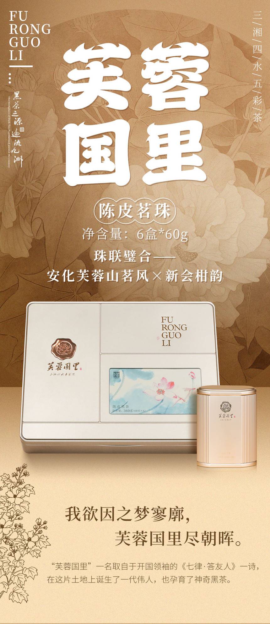 白沙溪安化黑茶湖南正品芙蓉國里正宗新會陳皮茗珠黑茶360g禮盒裝[支持定制]