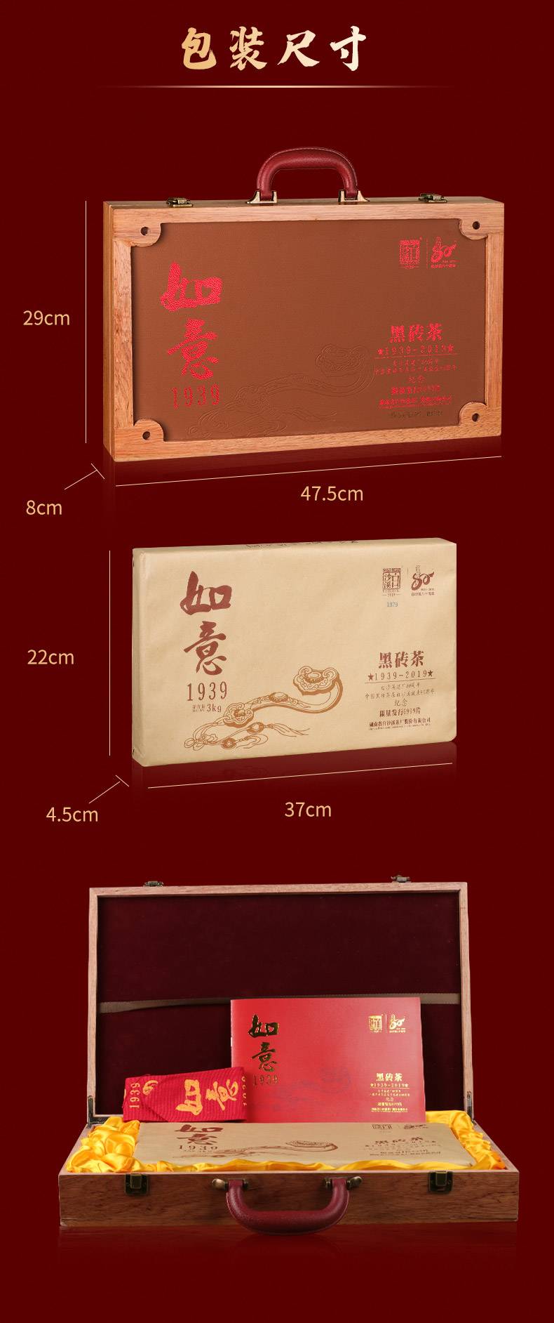 白沙溪湖南安化正宗黑茶建80周年限量版黑磚茶如意1939 (3kg)