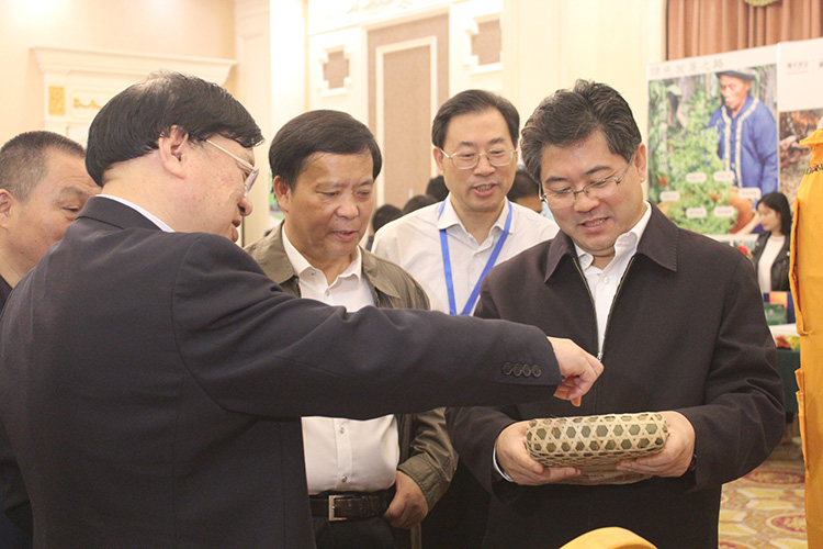會議期間,副省長隋忠誠、省農(nóng)委主任劉宗林等領導在公司董事長周重旺的陪同下來到集團展位,隋省長認真了解了“臻溪牌”輕輕茶、“白沙溪”牌篾簍花磚茶的加工工藝和功效,給予了高度評價。