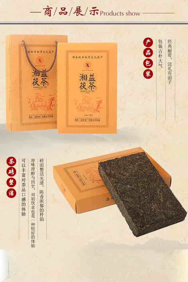 益陽茶廠是全國茯磚茶生產(chǎn)廠家和茯磚茶原料儲(chǔ)備承儲(chǔ)企業(yè),創(chuàng)建于1953年,“湘益”素有“古絲綢之路上的神秘之茶”、“西北少數(shù)民族的生命之茶”的美譽(yù),其“茯磚茶手筑工藝”已被列入國家級(jí)非物質(zhì)文化遺產(chǎn)保護(hù)名錄。 ??“湘益”茯茶均采用優(yōu)質(zhì)黑毛茶為原料,經(jīng)篩分投入拼配篩制—汽蒸渥堆—壓制定型—發(fā)花—干燥出烘—包裝入庫等工序精制而成,茶葉金花普茂,湯色紅濃,滋味醇厚,具有明顯的調(diào)節(jié)新陳代謝、降脂降糖功效。