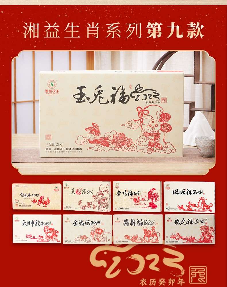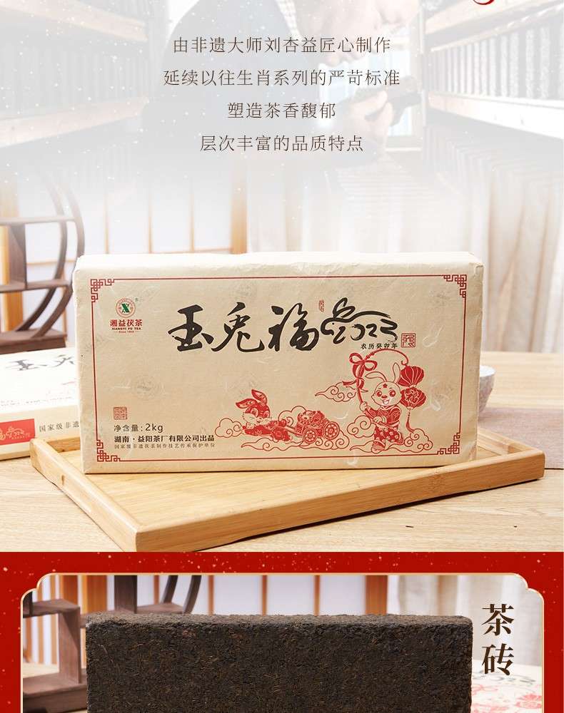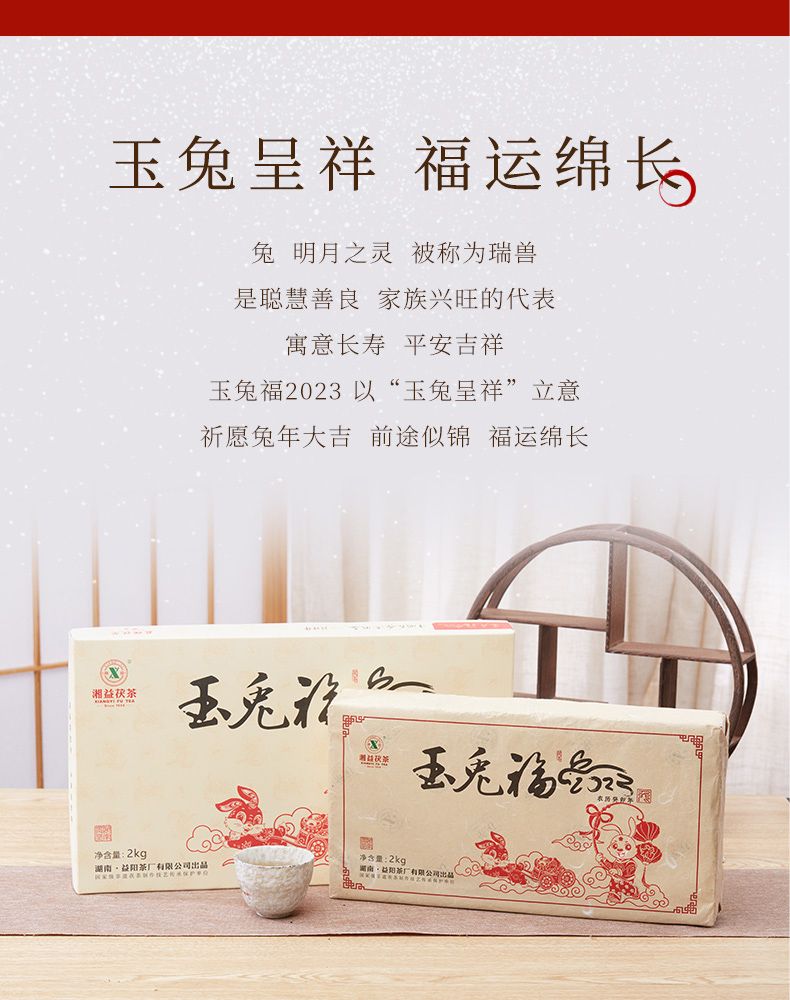 湘益獲茶2023年兔年生肖紀(jì)念茶玉免福2kg湖南正宗安化黑茶獲磚茶