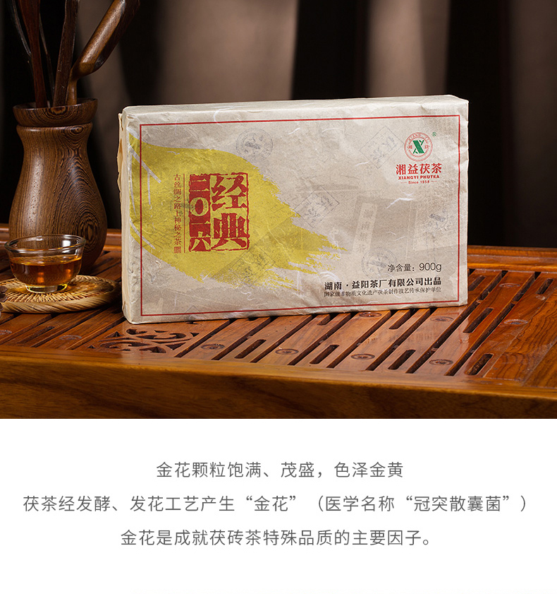 • 湘益茯茶900g經(jīng)典2016金花茯磚黑茶