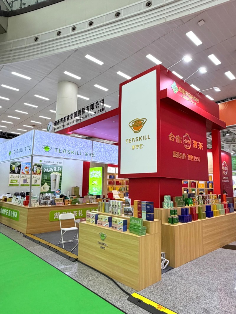 整個(gè)展位像個(gè)“湘茶小集市”:年輕人愛扎堆的茶守藝在這兒,能試喝湖南茉莉奶茶,茶禮五折起,冰激凌第二支半價(jià),玩投茶游戲還能贏茶香薰;旁邊湖南茶葉博物館很適合慢慢看,答茶題換文創(chuàng)扇、胸章,試喝國色天香紅茶,順便漲知識(shí)。