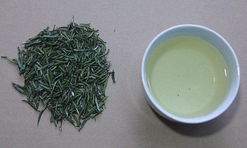 玉針:外形扁平光滑,色澤翠綠,清芳悅鼻,湯色清澈明亮,滋味醇厚鮮爽,回味甘爽持久。