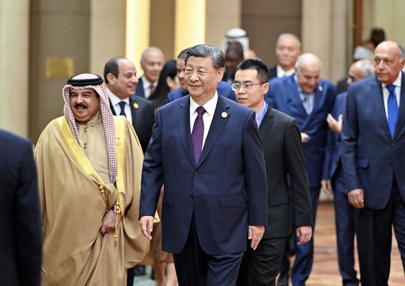 習(xí)近平強調(diào),當(dāng)前,世界百年變局正在加速演進(jìn)。中國和阿拉伯國家都肩負(fù)著實現(xiàn)各自民族振興、加快國家建設(shè)的時代使命。構(gòu)建中阿命運共同體彰顯我們開辟中阿關(guān)系新紀(jì)元、開創(chuàng)美好世界新未來的共同愿望。中方愿同阿方守望相助,平等互利,包容互鑒,緊密協(xié)作,把中阿關(guān)系建設(shè)成維護世界和平穩(wěn)定的標(biāo)桿、高質(zhì)量共建“一帶一路”的樣板、不同文明和諧共生的典范、探索全球治理正確路徑的表率。