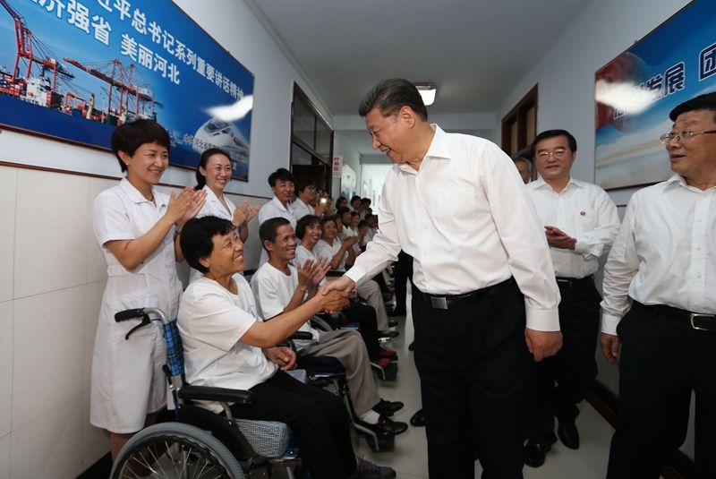 2016年7月28日,習(xí)近平總書記在唐山市截癱療養(yǎng)院看望慰問截癱傷員。新華社記者 蘭紅光 攝