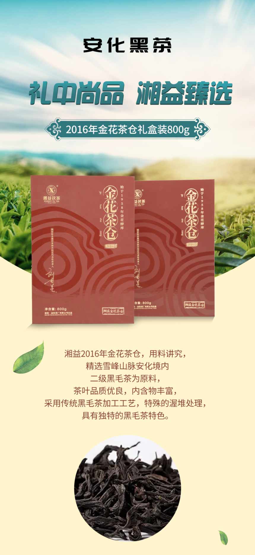 • 湖南正宗安化黑茶湘益金花茶倉2016年獲磚茶2kg
