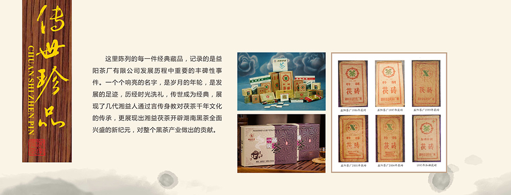 這里陳列的每一件經(jīng)典藏品,記錄的是益陽茶廠有限公司發(fā)展歷程重要的豐碑性事件,一個個響亮的名字,是歲月的年輪,是發(fā)展的足跡,歷經(jīng)時光洗禮,傳世成為經(jīng)典,展現(xiàn)了幾代湘益人通過言傳身教對茯茶千年文化的傳承,更展現(xiàn)出湘益茯茶開辟湖南黑茶全面興盛的新紀元,對整個黑茶產(chǎn)業(yè)做出的貢獻。
